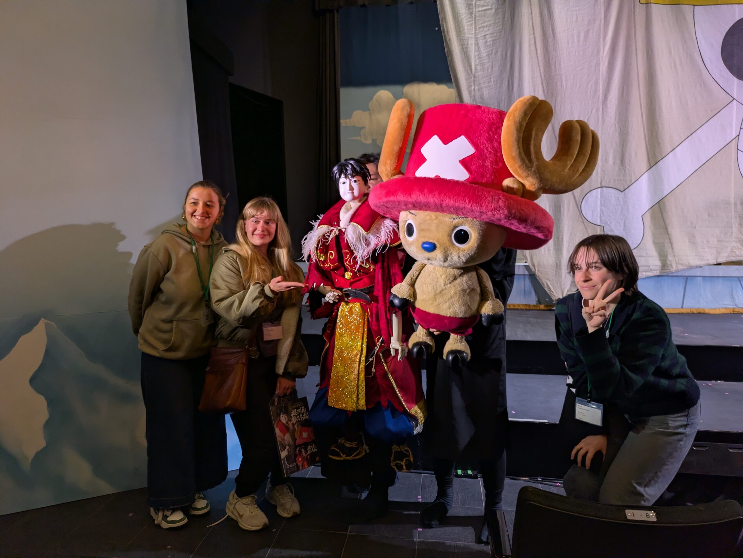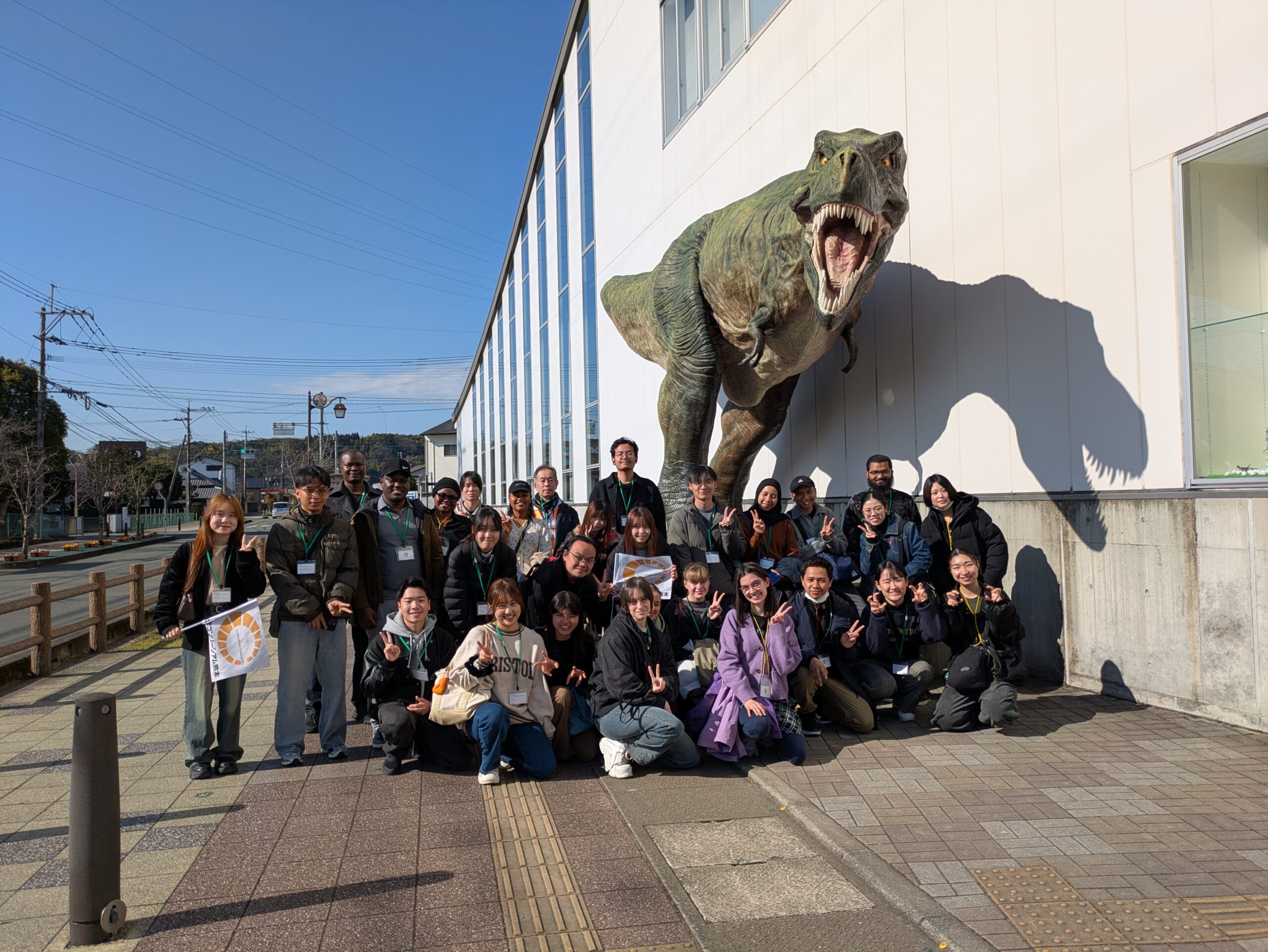 熊本の文化や歴史を学ぶ日帰りバスツアーを実施しました。御船町で漫画『ONE PIECE』のブルック像を訪れた後は、恐竜博物館を見学しました。午後には清和文楽館にて清和文楽×ONE PIECE 「超馴鹿船出の冬桜」(チョッパーふなでのふゆざくら)を鑑賞しました。迫力のある三味線の演奏や太夫(たゆう)の声、生き生きと動く人形たちの演技には、留学生も日本人学生たちも、大変感銘を受けました。